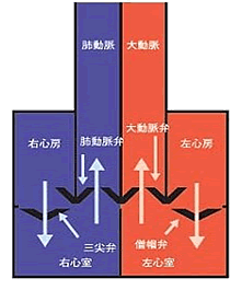 心臓は収縮したり拡張したりすることによって、ポンプの様な作用で血液を全身に送っています。身体を流れる全ての血液は心臓にかえり、心臓から出て行きます。心臓の中には、血液が心臓を通る時に逆流しないように、閉じたり開いたりする弁が四つあります。心臓は四つの部屋からできており、各部屋の出口に弁がついています。心雑音の多くは、血液がこの弁を通る時に生じます。