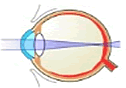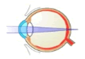 調節をせずに楽に物を見たとき、焦点が網膜の後ろに来る状態です。眼の長さが短いか、 角膜や水晶体の屈折力が弱いために起こります。